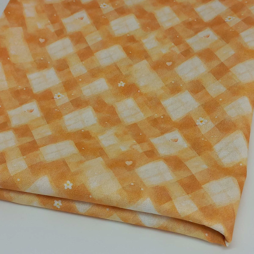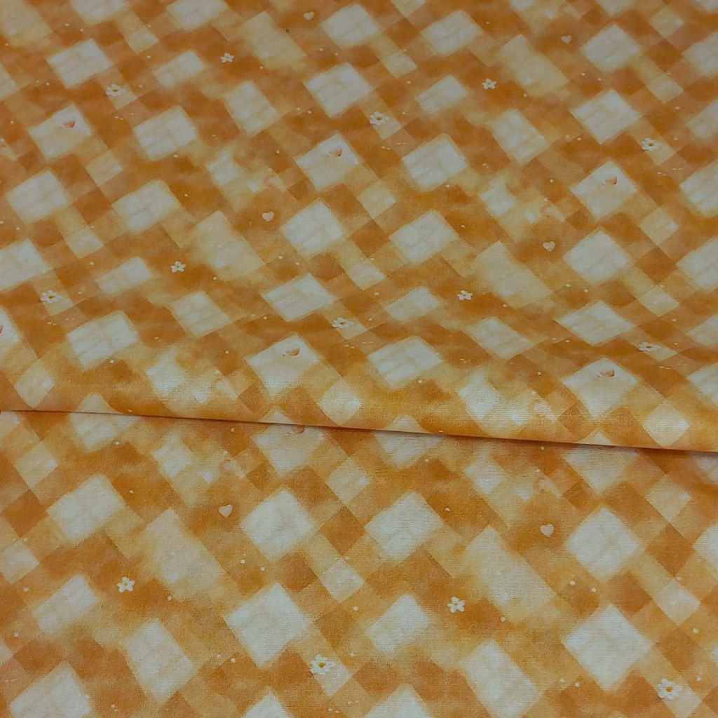Estampa xadrez largo com florzinhas em tonalidade caramelo.