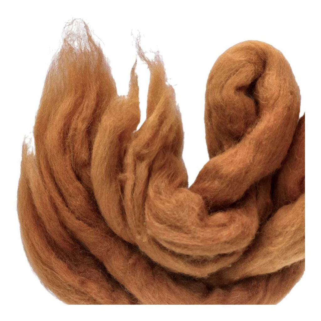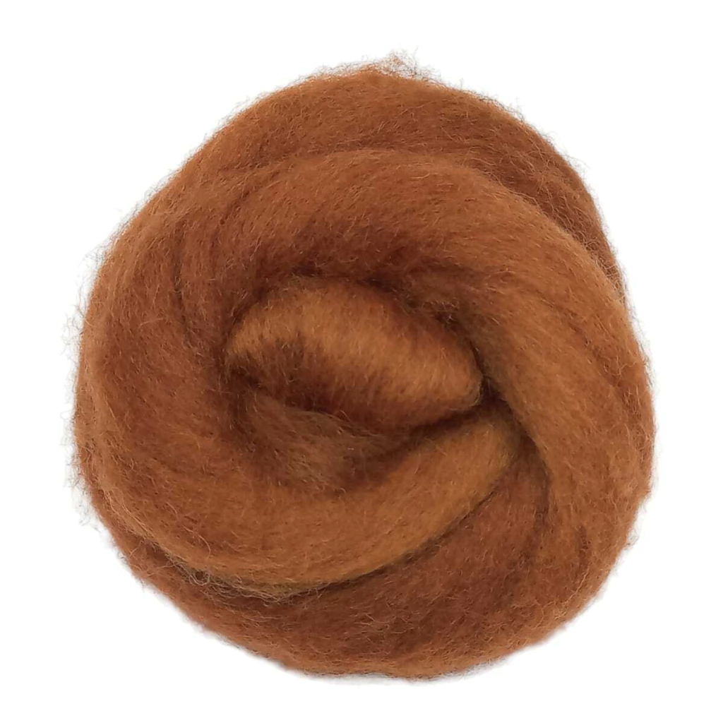 Meada de 50 gramas de lã natural de ovelha penteada colorida na cor ferrugem.