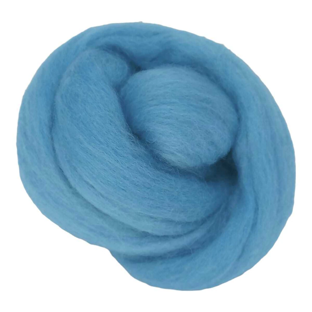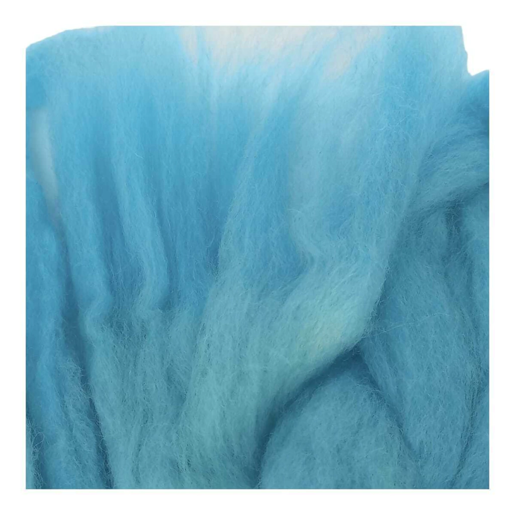 Meada de 50 gramas de lã natural de ovelha penteada colorida na cor turquesa suave.