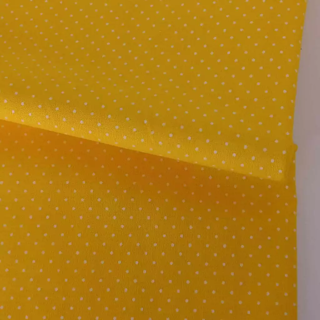 Com um fundo amarelo vibrante e delicados mini poás brancos, esse tecido é o complemento ideal para seus composês, trazendo delicadeza e um toque de cor para suas criações. Seja para roupinhas de boneca, jogos americanos, bolsas, almofadas ou qualquer outro projeto artesanal, esse tecido é uma escolha versátil e encantadora.